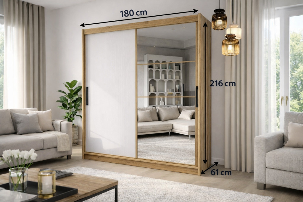 Tolóajtós rendszerrel, tükrös ajtóval, 180 cm széles méretben