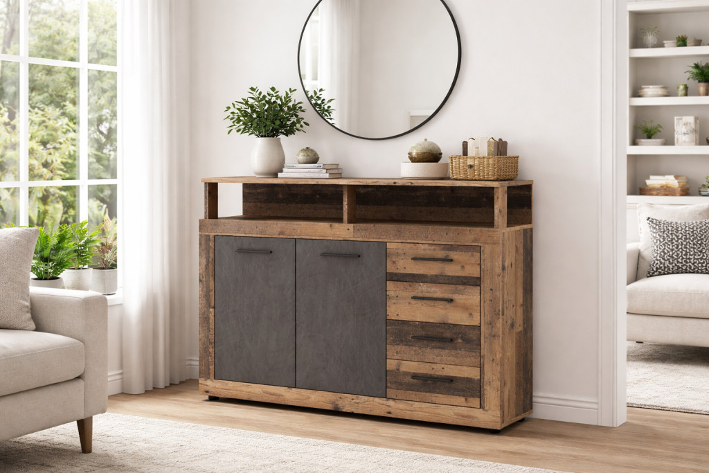 Klasszikus stílusú komód, amely remekül illik a legtöbb helyiségbe.