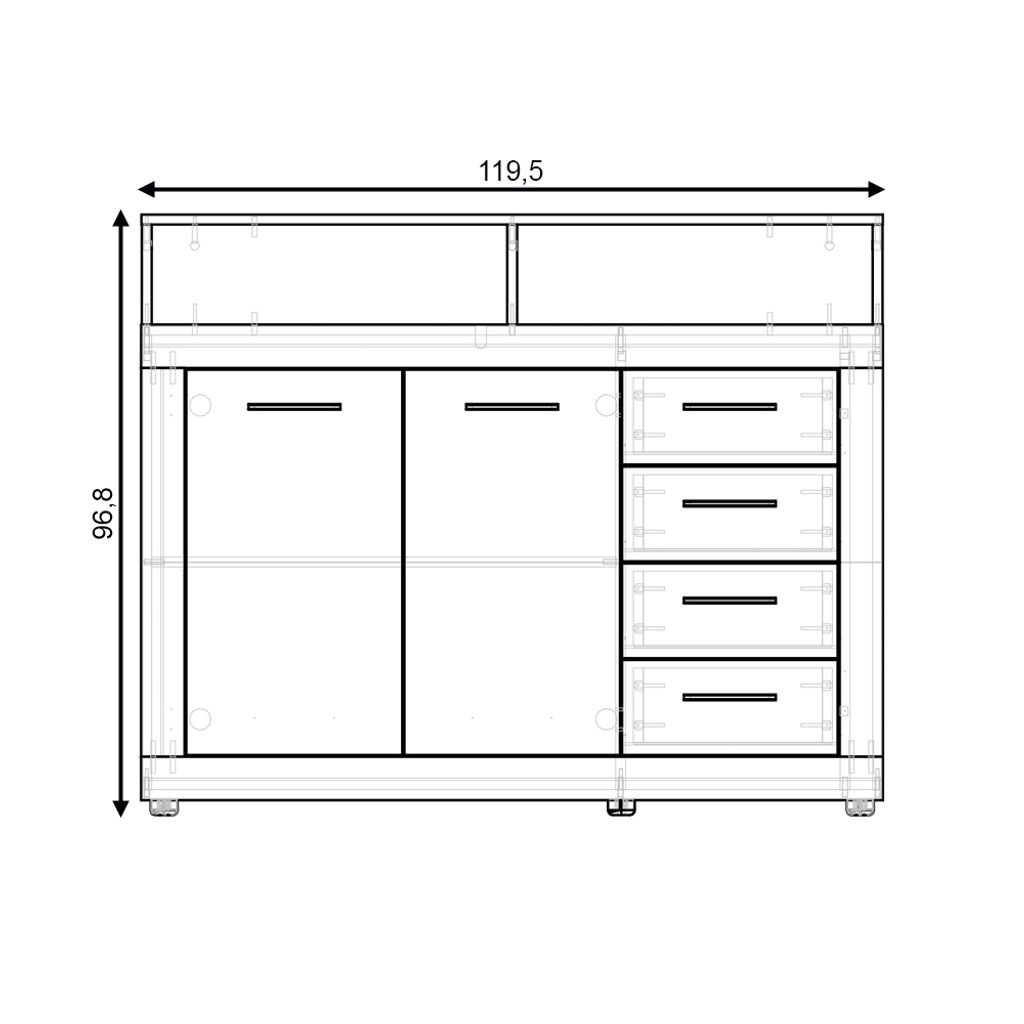 Ez a jó minőségű Luna komód kapott ajtós részeket és fiókokat is.