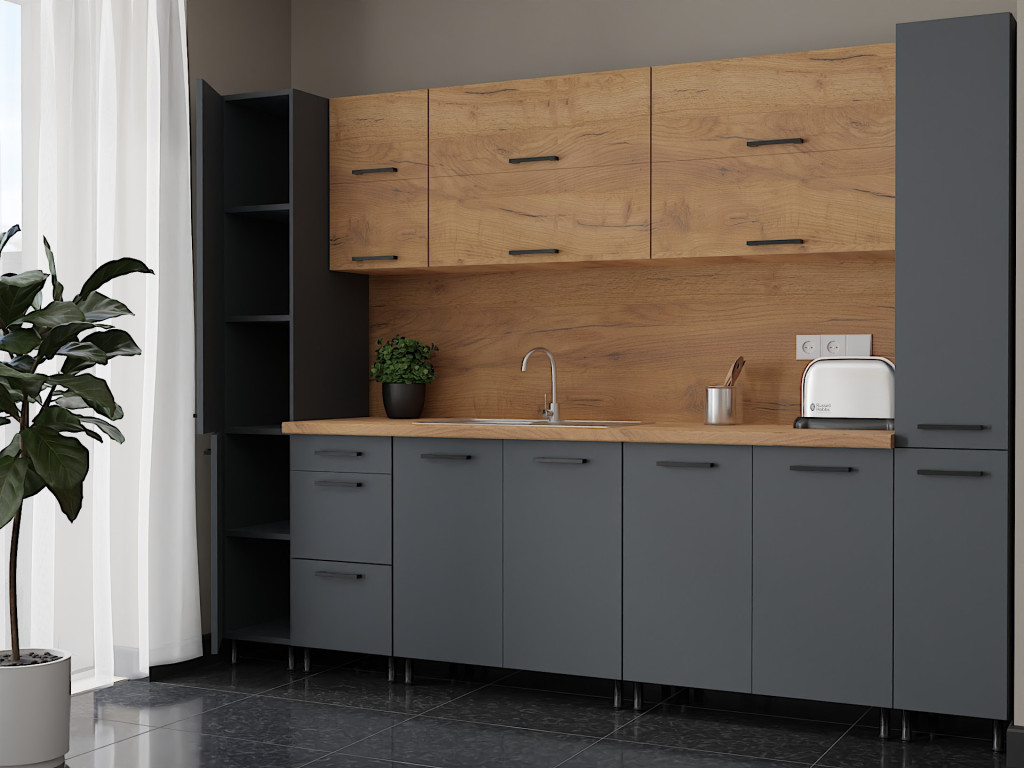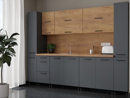 Melinda 260 cm-es Konyhabútor Antracit- Aranytölgy