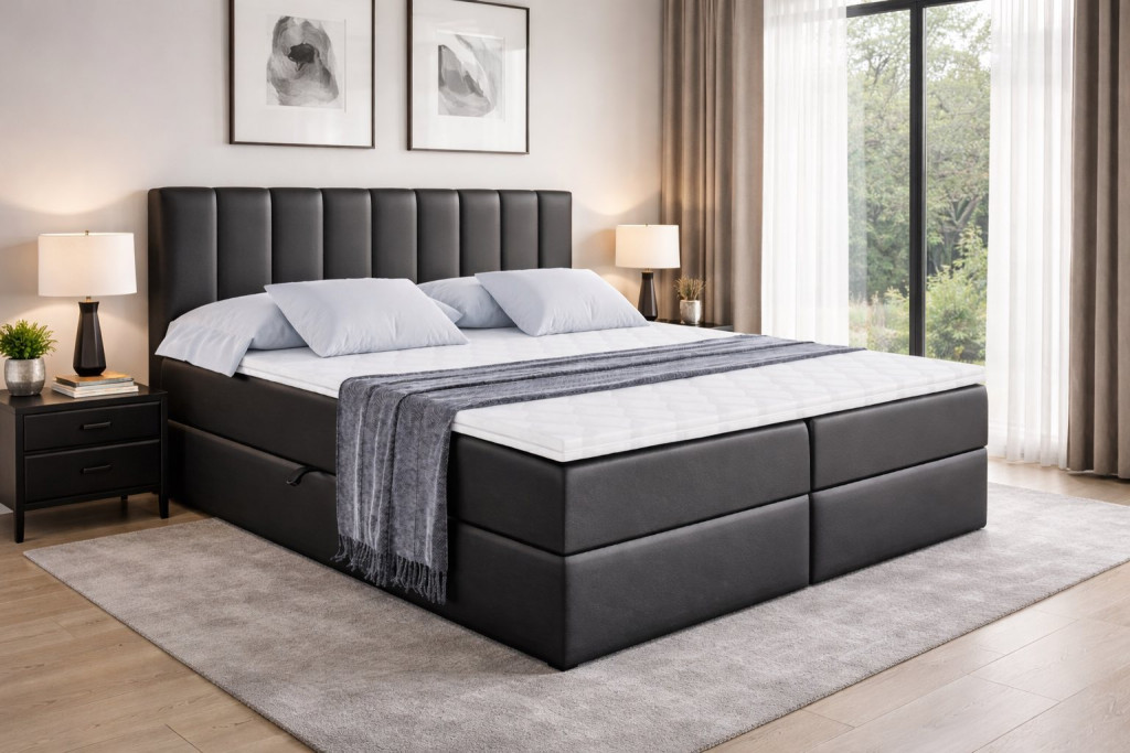 Ez a letisztult és praktikus boxspring ágy elegáns, minimalista dizájnnal rendelkezik, amely számos belső térhez illik.