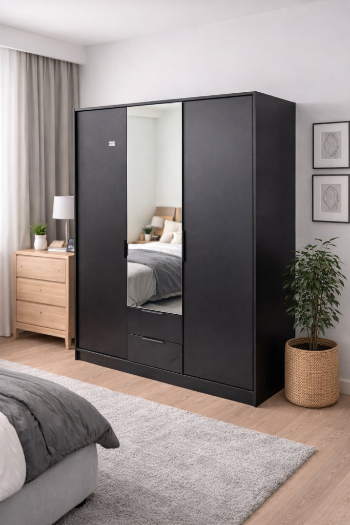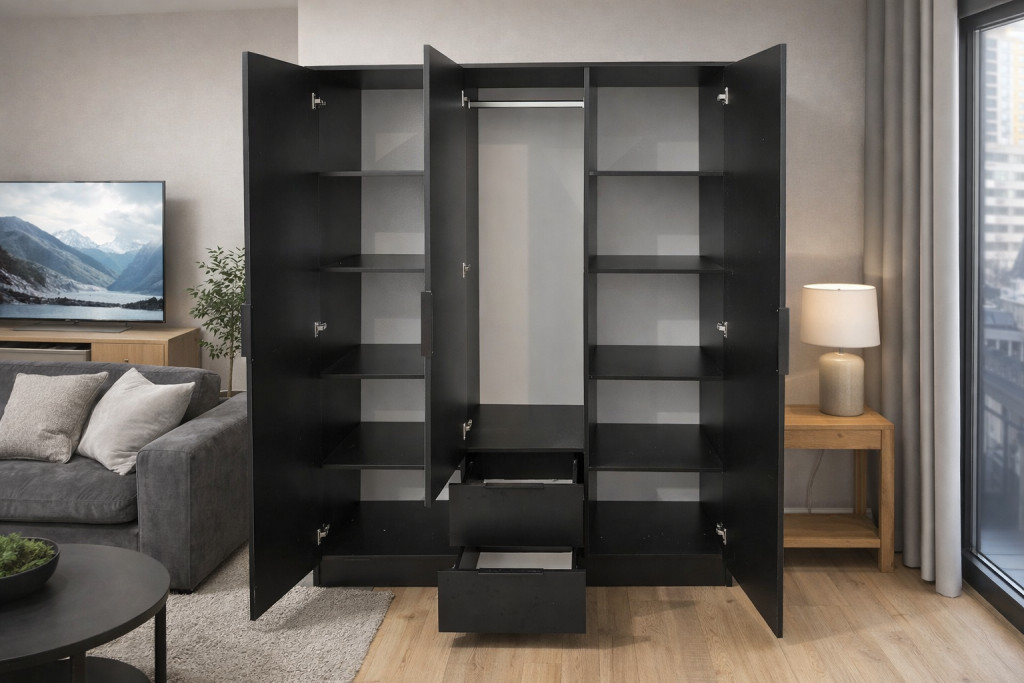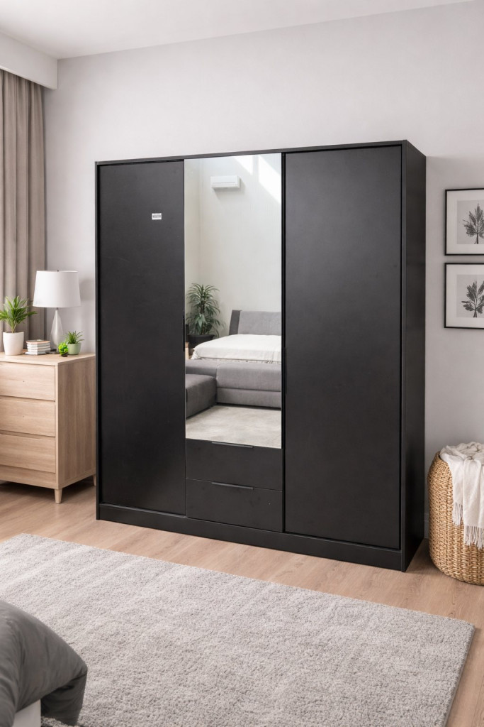 Totó gardróbszekrény – modern stílus és kontrasztos elegancia Matt Fekete kivitelben