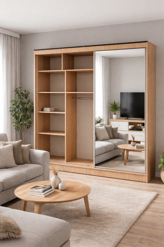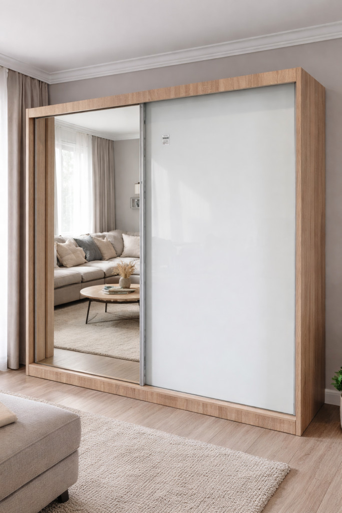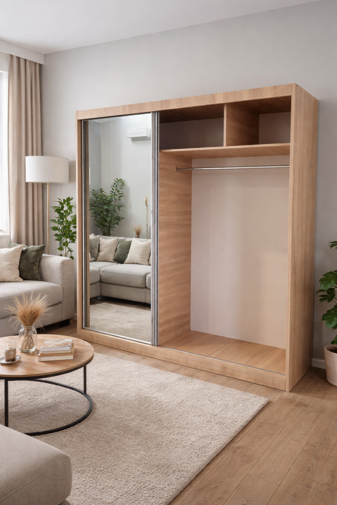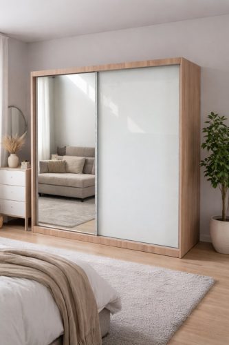 A tükrös ajtó nemcsak esztétikus, hanem optikailag növeli a térérzetet is.