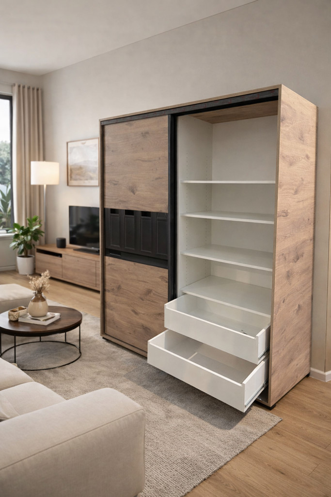 Polcos és akasztós belső elrendezés – tökéletes tárolás minden igényhez